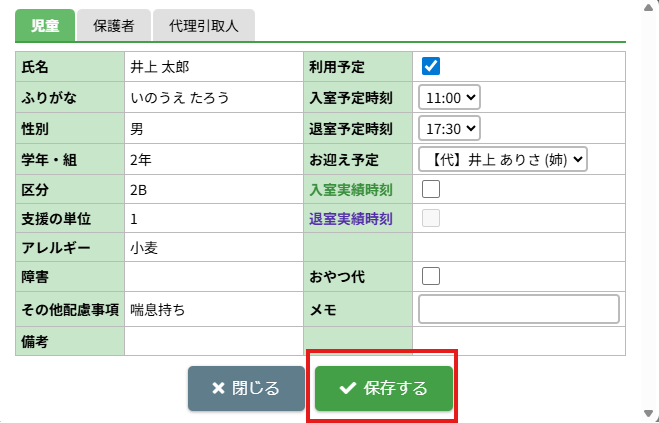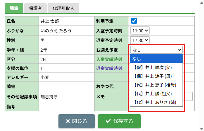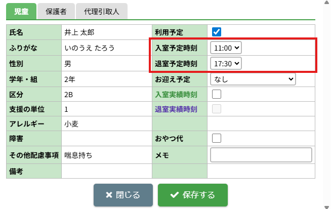 1.入退室予定・お迎え予定を変更する