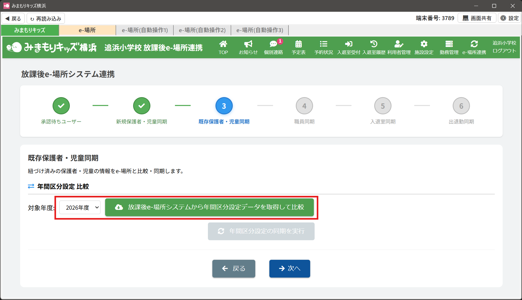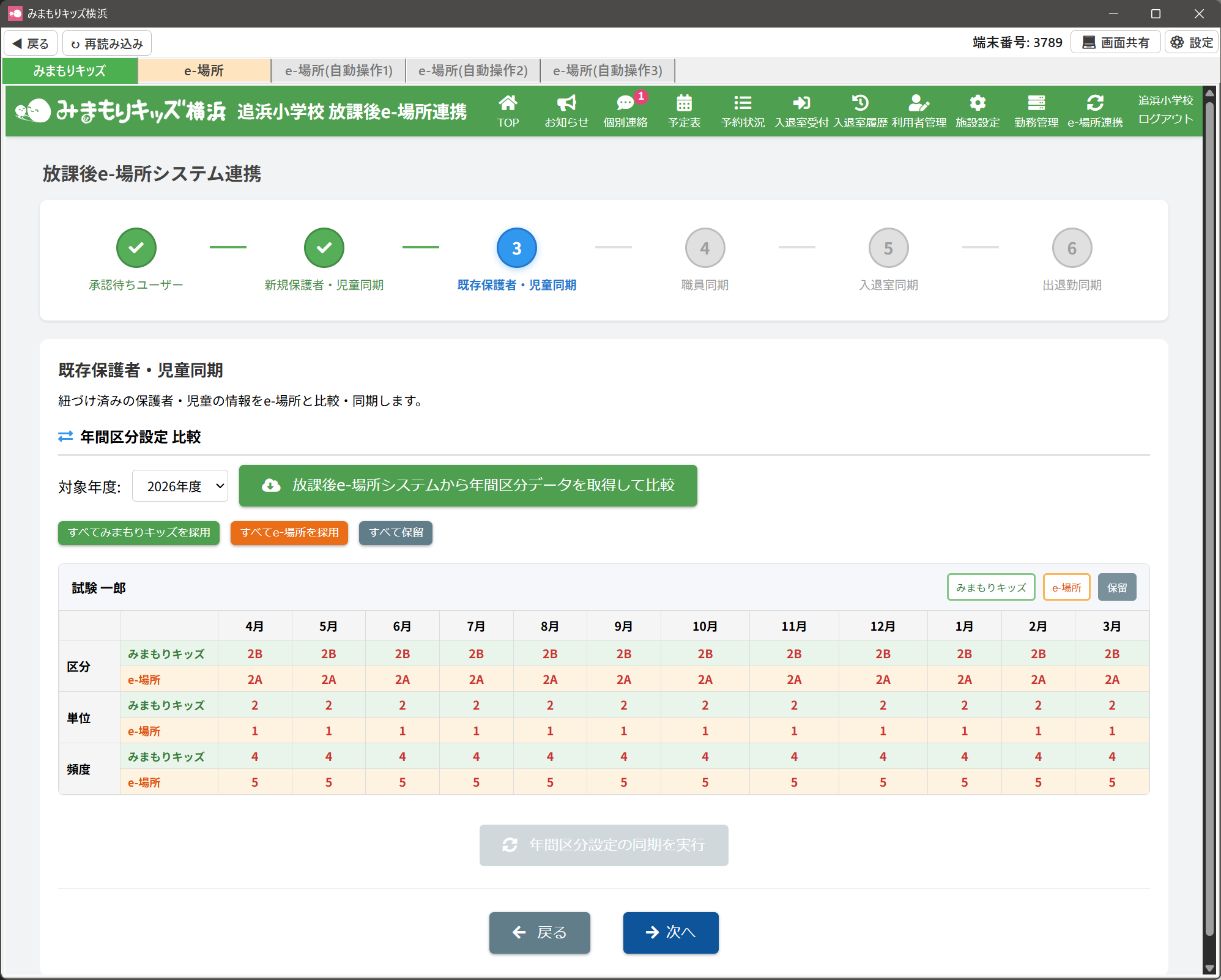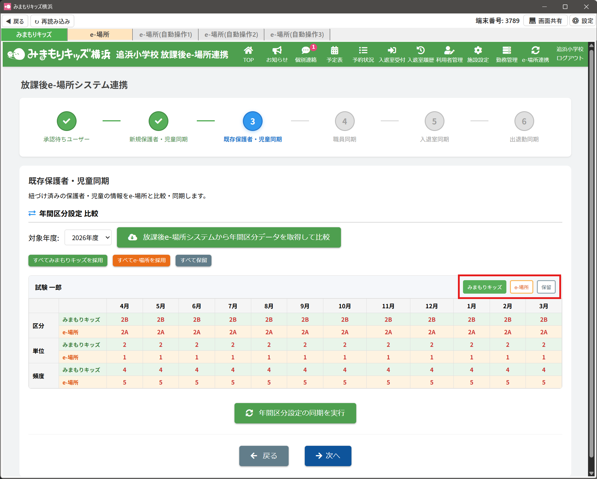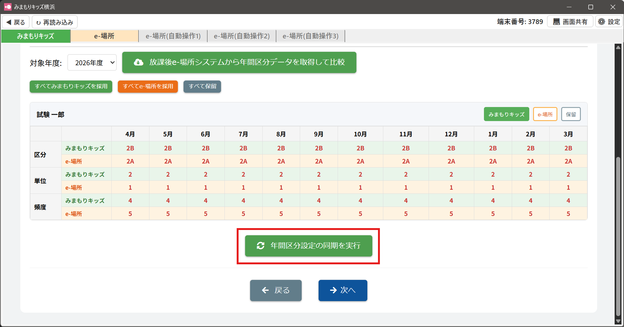 e-場所:e-場所システムの年間区分設定データを採用し、みまもりキッズの年間区分設定データを上書きします。