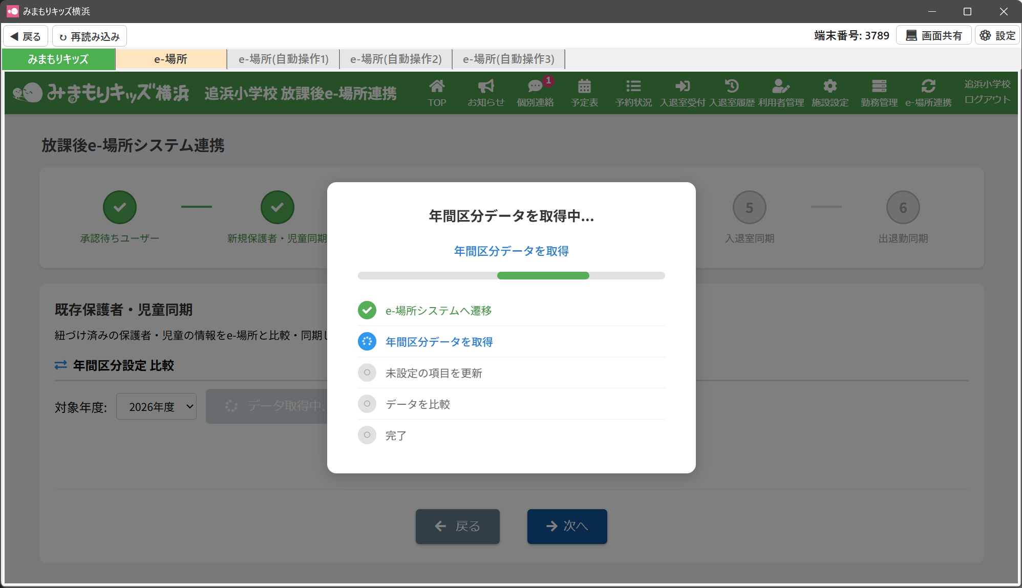 ②放課後e-場所システムの年間区分設定データの取得が行われますので、完了までお待ちください。