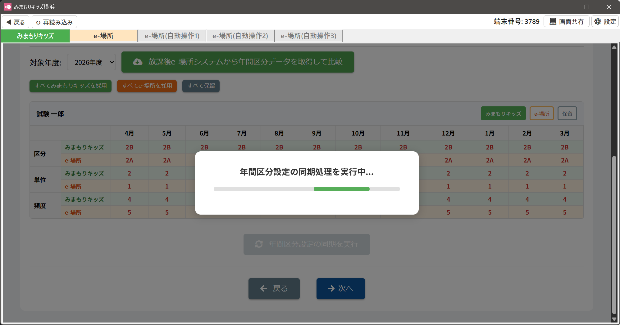 みまもりキッズ:みまもりキッズの年間区分設定データを採用し、e-場所システムの年間区分設定データを上書きします。