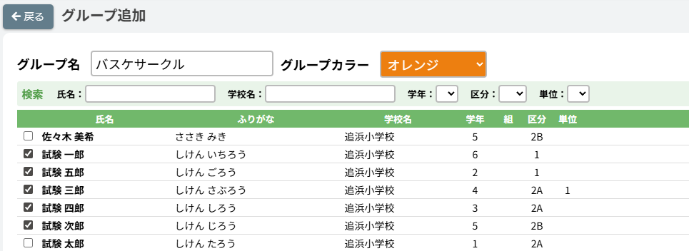お好みのグループを作成して児童をグループに所属させる機能を追加しました。