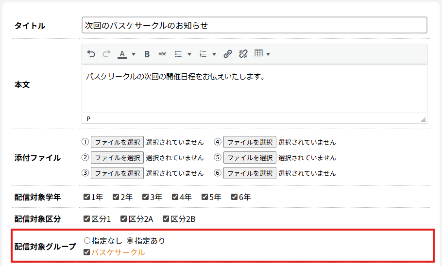 お知らせの配信時に、特定のグループのみに配信することができるようになりました。