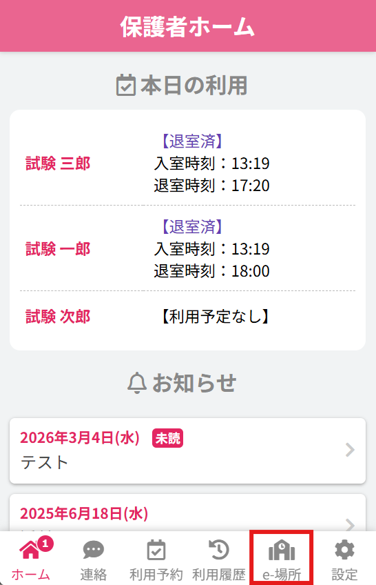 システムアップデートのお知らせ(2026/3/27) 2026年3月27日 お知らせ みまもりキッズのシステムアップデートを実施いたしましたので、下記の通りお伝えいたします。 不明点等ございましたらお気軽にお問い合わせください。 【保護者画面】e-場所システムへ遷移するためのメニューを追加 保護者画面のメニューに「e-場所」ボタンを追加し、押すことで放課後e-場所システムへ遷移できるようになりました。