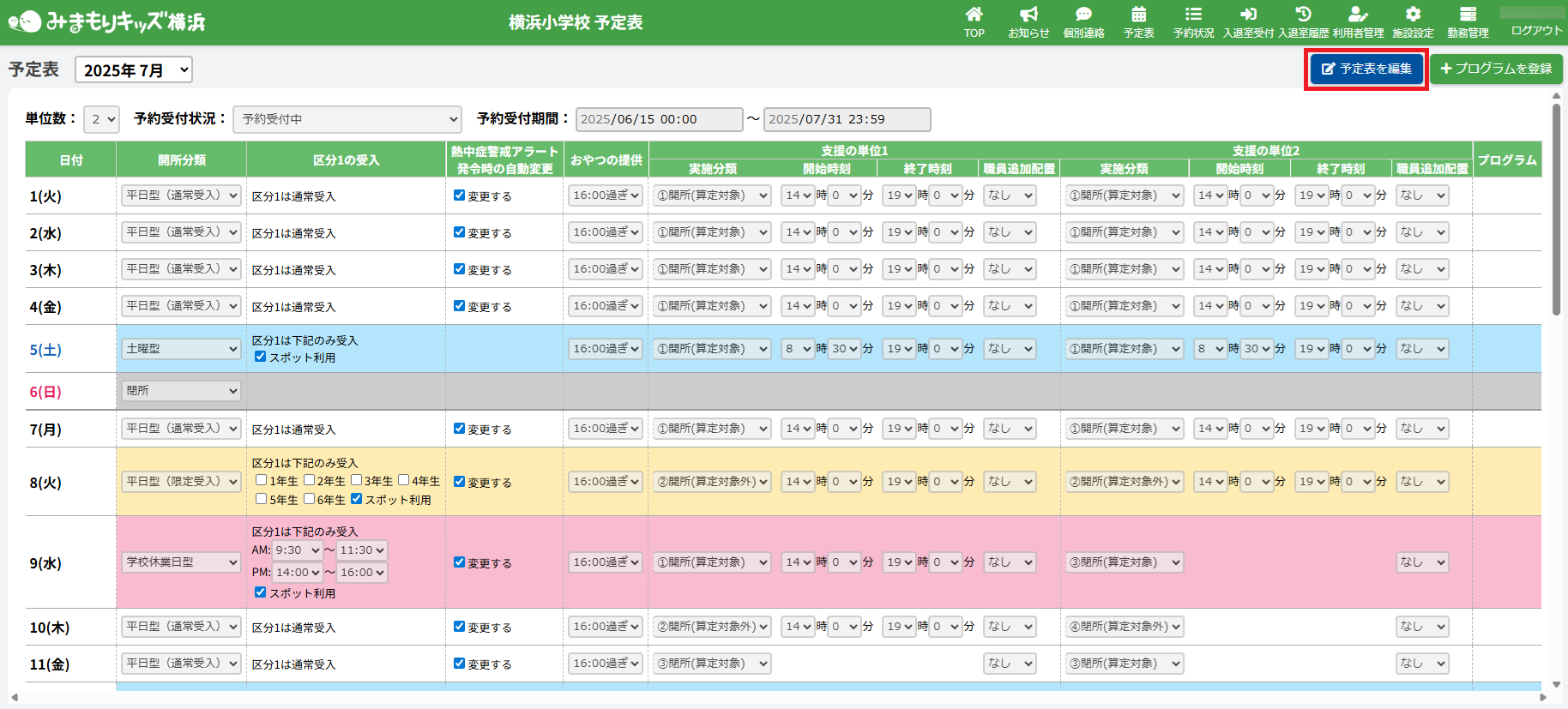 画面上部にある【予定表を編集】ボタンをクリックしてください。