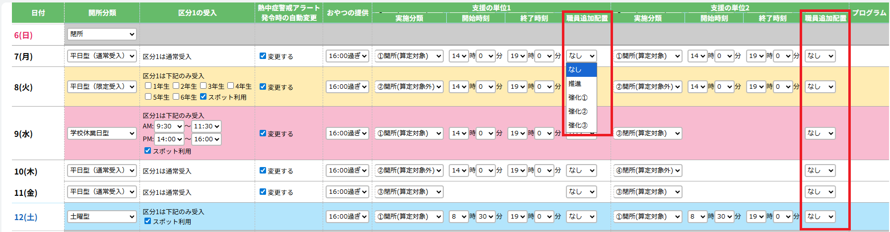 単位ごとの職員追加配置の設定を行うことができます。