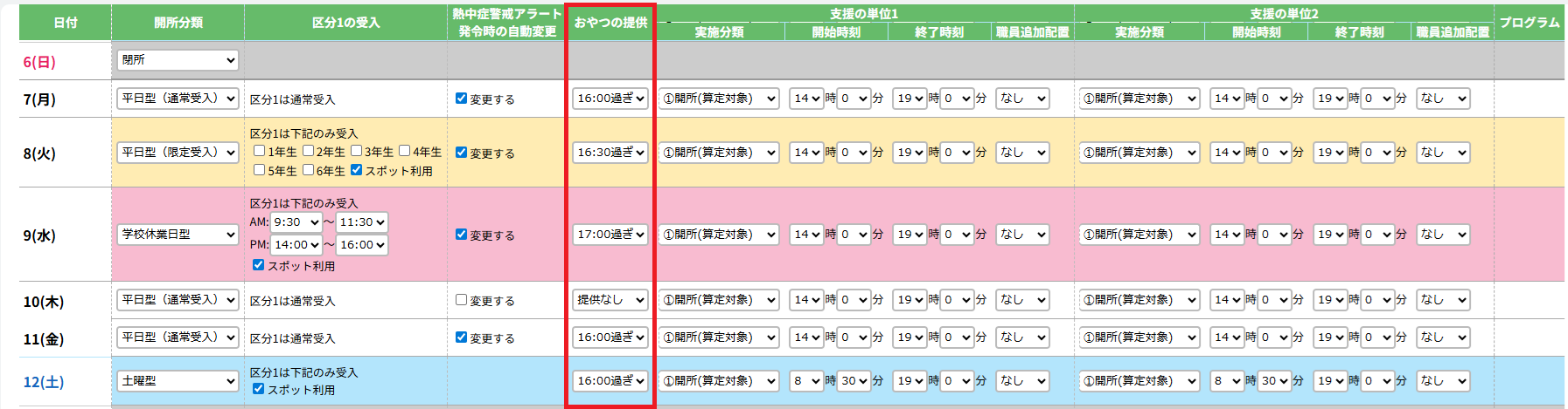 8.おやつの提供時間を設定する