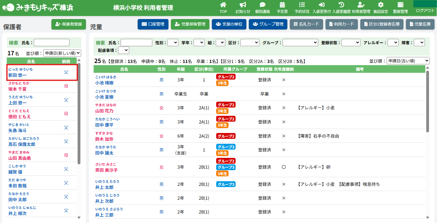 兄弟など他の児童を登録済みの場合は、一覧で表示されます。