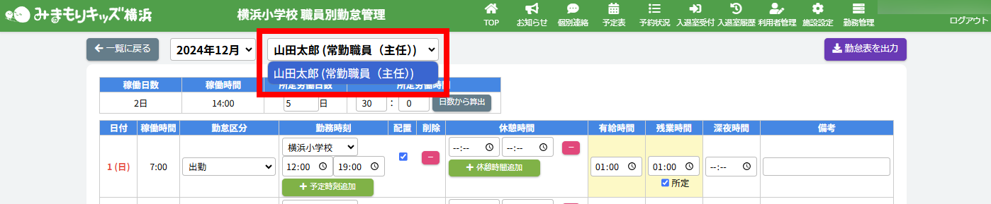 画面のドロップダウンメニューから、編集したい職員を選択してください。